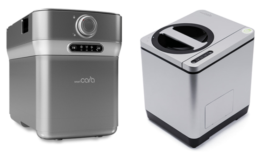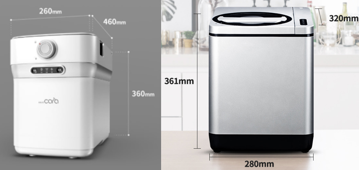 스마트카라 PCS-400(좌측), 스마트카라 PCS-350(우측) 다른 스펙을 살펴보면 투입/건조/분쇄의 처리방식, 최대 90%의 감량율, 500W 소비전력까지 모두 동일한데 그렇다면 과연 스마트카라 PCS-400의 차별점은 무엇이기에 크기에서 메리트가 없음에도 불구하고 출시가 된 것일까?