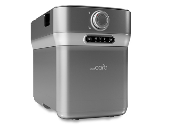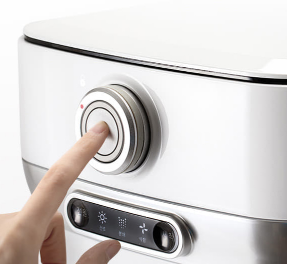 스마트카라 PCS-400의 조작부 먼저 조작부의 위치가 PCS-350에서는 상부에 있었다면 PCS-400에서는 정면으로 바뀌었다. 바닥에 두고 사용할 경우 상부 조작식의 PCS-350이 편할 수 있지만 깔끔한 사용은 PCS-400이 더 낫다. 왜냐하면 PCS-350에서는 음식물을 넣기 위해 상부 뚜껑의 손잡이를 직접 손으로 돌려 열고 닫아야 했다면 PCS-400은 다이얼의 중앙 버튼을 통해 뚜껑을 열고 다이얼을 통해 잠글 수 있어 상부는 물론 조작부 역시 음식물 찌꺼기 등의 이물질이 묻을 확률이 낮아졌다.