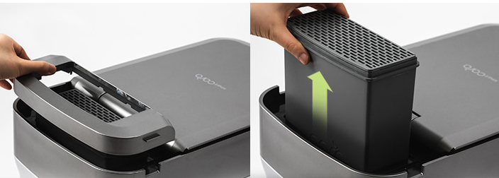 스마트카라 PCS-400의 필터교체 방식 확실한 개선이라 볼 수 있는 부분은 필터교체방식과 건조통이다. 먼저 필터를 살펴보면 스마트카라 PCS-400의 필터는 PCS-350의 원형 2개 세트에서 직사각형 형태의 1개로 형태가 바뀌었고, PCS-350이 본체 뒤편에 필터교체부가 있었다면 PCS-400은 상부에 필터교체부가 있어 필터 교체를 보다 손쉽게 할 수 있다. 참고로 필터의 공식판매가격은 둘 다 17,000원으로 동일하다.
