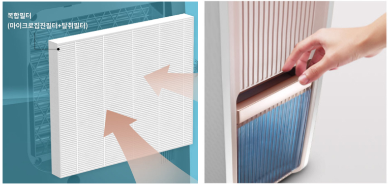 이밖에도 집진필터와 탈취필터가 합쳐진 복합필터를 통해 미세먼지와 생활냄새를 제거할 수 있으며, 조명 기능이 탑재된 원핸드 히든 물통으로 간편하게 수위를 확인할 수 있다.