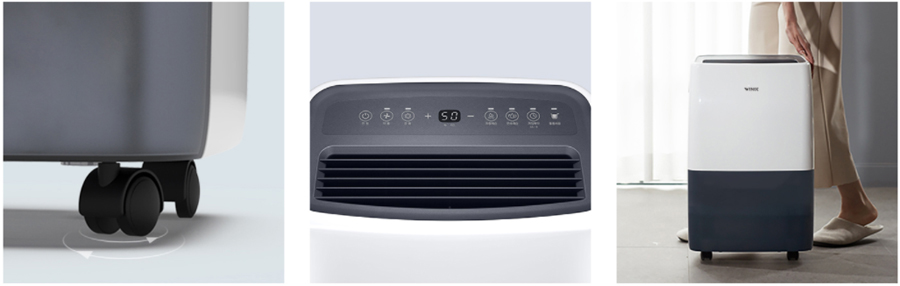 이밖에도 360도 회전휠, 고정형 토출 그릴, 히든 손잡이가 장착되어 있으며, 거의 모든 위닉스 제습기에 적용되어 있는 자동성에제거, 만수감지, 연속배수, 타이머 기능 역시 본 모델에도 탑재되어 있다.