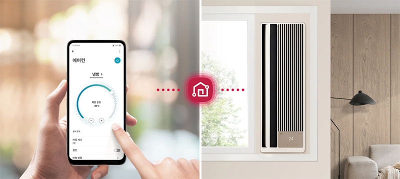 자석을 이용해 본체에 탈부착할 수 있는 리모컨은 기본, 스마트폰의 LG 씽큐 앱을 통해 기본적인 조작과 상태 모니터링은 물론 집에 도착하기 전 미리 에어컨을 켜 놓을 수도 있다. 또한 UP가전을 지원하기 때문에 다양한 디스플레이와 멜로디 등도 다운로드하여 에어컨에 적용할 수 있다.