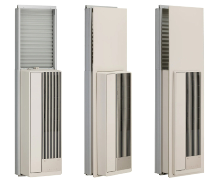 좌측부터 마감키트 미포함, 단창용 마감키트, 이중창용 마감키트 LG 창문형 에어컨은 오브제컬렉션에 엣지라는 명칭까지 붙은 만큼 세련된 오브제 색상으로 크림 화이트, 카밍 베이지가 있고, 에어컨 본체 크기도 329x925x259mm로 경쟁사 창문형 에어컨에 비해 높이는 길지만 깊이에서 강점이 있다. 또한 설치용 마감키트는 오브제 창문형 에어컨의 핵심으로 창문형 에어컨을 인테리어를 위한 창호형 에어컨으로 완성시켜 준다.