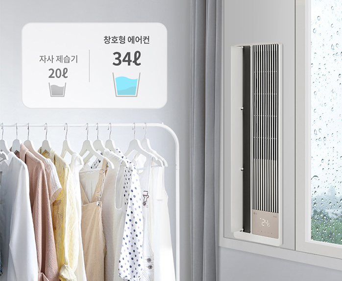 참고로 두 제품 모두 제습기능이 있으나, 냉방능력이 더 높은 LG 창문형 에어컨의 일일 제습량(34리터)이 더 높을 것으로 추정되며, 냉방효율과 마찬가지로 제습효율도 더 뛰어날 것으로 판단된다. (삼성 윈도우핏의 일일제습량은 미공개)