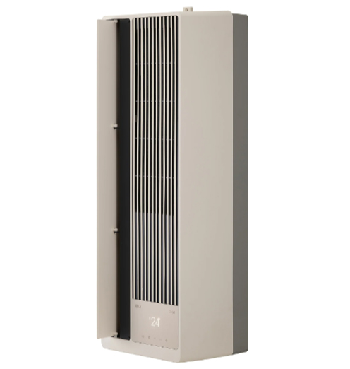 별도의 마감키트가 없는 경우 여타의 창문형 에어컨의 설치 형태처럼 주름막과 창틀이 그대로 노출되지만 마감키트를 사용하게 되면 위와 같이 벽과 일체감을 주는 깔끔한 설치가 가능하다.
