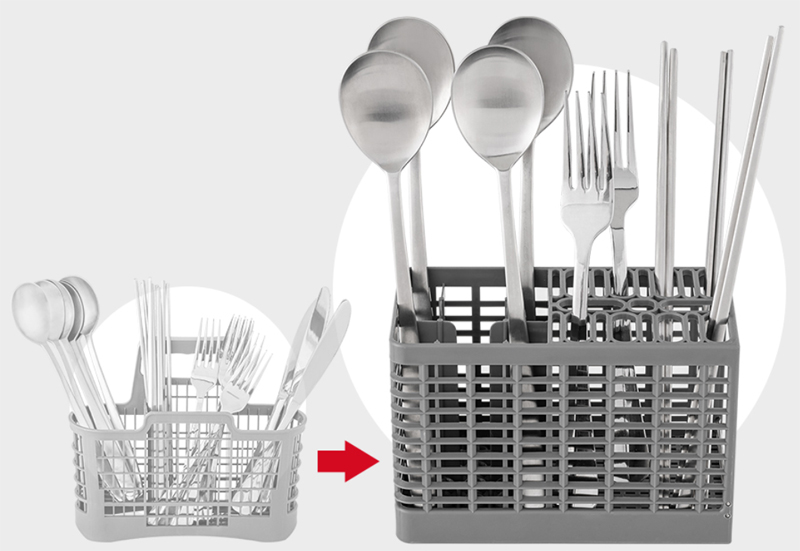수저통 역시 CDW-BD0610TG는 개별 칸막이가 있는 수저통으로 수저의 겹쳐짐을 최소화해 보다 꼼꼼한 세척이 가능하다.