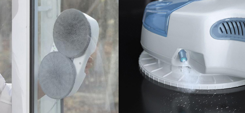 (좌) HUTT DDC55, (우) HUTT C6 깨끗한 창문 청소를 위해서는 물분사, 정확히는 창문용 세정액 분사가 필수이다. 이를 위해서 DDC55는 사람이 직접 분무기를 통해 창문에 세정액을 분사해야 될 뿐만 아니라 큰 창문의 바깥에는 팔이 닿지 않는다든지 하는 이유로 분사의 한계가 있다. 하지만 C6 본체에는 80ml의 물탱크가 있어 물탱크에 세정액을 넣으면 청소 동작에 맞추어 적당량의 분사가 자동으로 균일하게 이루어져 사람이 수동으로 힘들게 분사를 할 필요 없을 뿐만 아니라 이를 통해 팔이 안닿는 부분까지 세정력 높은 청소가 가능해 3번 돌릴 것을 2번만 돌려도 된다.