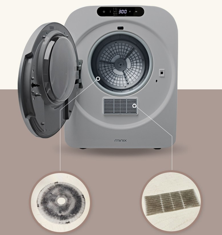 (좌) 배기필터, (우) 흡기필터 미닉스 미니건조기는 5중 필터 시스템으로 미세먼지나 섬유 찌꺼기 같은 유해물질과 건조시 사용된 더러운 공기가 실내에 배출되지 못하도록 깨끗하게 걸러준다. 하지만 여기에 사용되는 필터는 소모품으로 배기필터의 수명은 3개월, 흡기필터의 수명은 1년이다. 즉 미닉스 미니건조기는 1년간 배기필터 4개, 흡기필터 1개가 소비되는데 해당 필터세트의 가격은 12,000원으로 매년 12,000원의 필터 구입 비용이 필요한 것이다.