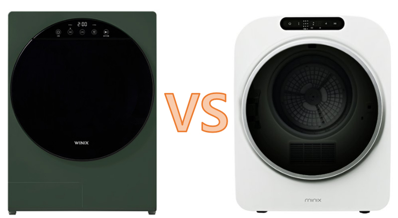 두 모델 탑재된 히터, 센서, 드럼이 다르며, 여기에 건조온도도 다르다보니 그에 따른 건조 능력도 차이가 있다. 위닉스 컴팩트 건조기는 미닉스 미니 건조기 PRO에 없는 습도센서가 있으며, 건조온도도 옷감 손상을 최소화할 수 있는 55도로 미닉스 미니 건조기보다 최대 5도가 더 낮다.