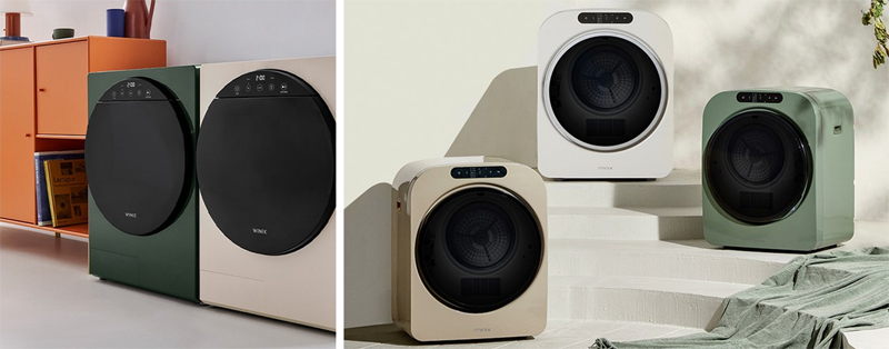 (좌) 위닉스 컴팩트 건조기, (우) 미닉스 미니 건조기 PRO 건조기의 컬러는 미닉스 미니건조기 PRO가 그레이지 색상이 하나 더 있어 선택의 폭은 더 넓다. 하지만 같은 그린이나 베이지 계열이라고 하더라도 위닉스 컴팩트 건조기의 그린은 보다 짙고, 베이지는 보다 화사해서 LG 오브제 컬러와 같은 세련된 느낌을 더 주는 것은 위닉스 건조기라고 본다.