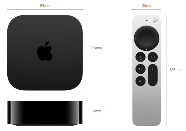 애플 TV 4K 3세대 셋째, 작아진 본체 크기와 줄어든 무게이다. 애플 TV 4K 3세대의 크기는 2세대 대비 가로는 5mm, 높이는 4mm, 깊이는 5mm 더 작아졌으며, 무게는 200g 넘게 가벼워졌다.