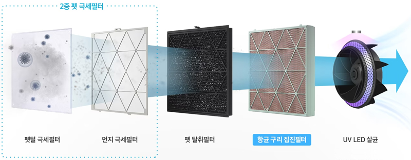 항균구리집진필터UV LED 살균 O O O O 맞춤케어필터 X O O O 특징 살균 탈취속도 펫케어 기본 바로가기 보러가기 보러가기 보러가기 보러가기 비스포크 큐브 에어 기본 모델도 쓸만한가?
