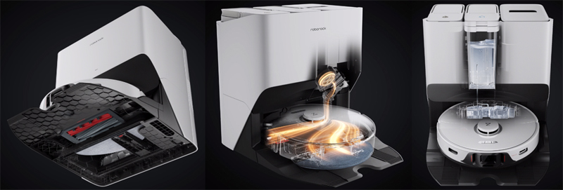 자동 먼지 비움이 가능한 도크 로봇청소기 본체의 먼지통 크기는 로보락 S8이 0.4리터로 가장 크나 그 이유는 자동 먼지 비움이 가능한 도크가 없기 때문이다. 로보락 S8 Plus나 S8 Pro Ultra처럼 도크가 있는 경우 청소가 끝난 후 로봇청소기가 도크로 이동하면 자동으로 먼지통 내의 모든 먼지가 2.5리터 대용량을 자랑하는 도크의 먼지통으로 이동되어 최대 7주까지 먼지통 비움을 하지 않고 사용할 수 있다.
