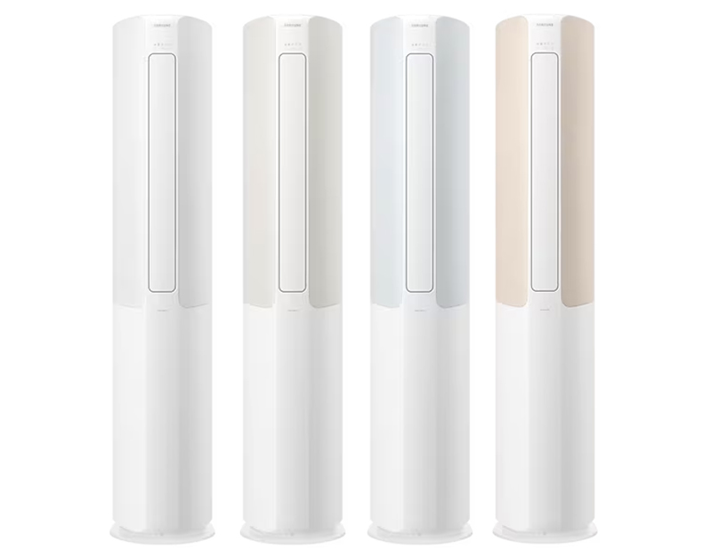 좌측부터 미스티 화이트, 산토리니 베이지, 에어본 그레이, 샴페인 베이지 색상 23년형 삼성 비스포크 무풍에어컨 슬림은 비스포크 색상으로 미스티 화이트, 산토리니, 베이지, 에어본 그레이, 샴페인 베이지 총 4가지 색상이 추가되었다. 물론 기본 색상인 화이트가 가장 깔끔한 느낌이기에 가장 선호도가 높을 것으로 예상되나, 냉장고, 청소기, 공기청정기 등 주변 가전제품이나 벽지, 커튼 등의 색상과의 깔맞춤을 위해 베이지나 그레이의 선호도도 어느 정도 있을 것으로 보인다.