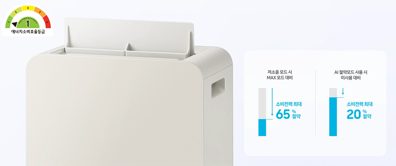 삼성 제습기는 22년형이든 23년형이든 저소음 모드 작동 시 최대 모드 대비 소비전력을 최대 65% 절약할 수 있는데, 23년형은 스마트싱스를 통한 AI절약모드도 사용이 가능해 AI절약모드 미사용 대비 소비전력을 최대 20% 절약할 수 있다. AI절약모드는 사용자가 선호하는 습도를 학습하여 평소 선호습도에서 5% 더 높은 습도로 상향 운전을 하여 소비전력을 줄인다.(사용자가 평소에 65%를 희망습도로 하고 있었다면 AI절약모드에서는 희망습도 70%로 하여 제습) 다만 그만큼 평소 작동 시간 대비 제습량은 줄어들기에 AI절약모드를 사용하지 않았을 때 보다 꿉꿉할 수 있다는 단점이 있다.