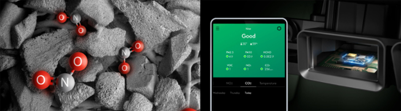 다이슨 빅콰이엇 포름알데히드 BP04 다이슨 공기청정기 빅콰이엇 모델은 BP04와 BP03이 있다. BP04의 색상은 블루와 골드, BP03은 니켈과 블루로 이루어졌는데 단순히 색상만 다른 것이 아니다. BP04의 탄소필터는 BP03의 일반 탄소필터가 아닌 강화된 K-탄소필터로 탄산칼륨이 포함되어 있어 이산화질소를 BP03의 탄소필터 보다 3배 더 많이 제거해 준다. 또한 이산화탄소 센서도 BP04에만 탑재되어 있다. 창문을 닫고 공기청정기를 작동시키면 필연적으로 실내 이산화탄소 농도가 올라갈 수 밖에 없는데 다이슨 빅콰이엇 BP04는 이산화탄소 농도를 실시간으로 감지할 수 있어 환기가 필요한 농도인 1500ppm을 초과하면 이를 사용자에게 알려준다.