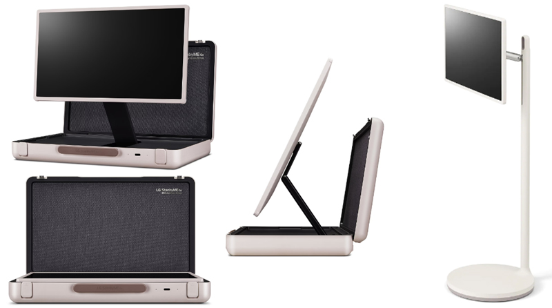 (좌) 스탠바이미 Go, (우) 스탠바이미 LG 스탠바이미 고는 스탠바이미 처럼 스탠드 형태가 아닌 캐리백 형태로 야외로 들고 나가 즐길 수 있도록 디자인되어 있다.