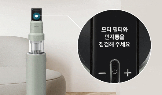 청소기 상태를 자동으로 점검할 수 있는 스마트 자가진단이 22년형 삼성 비스포크 청소기는 스마트폰의 스마트싱스로만 할 수 있었으나, 23년형 비스포크 청소기는 스마트싱스는 물론 청소기 자체의 LCD화면으로 보다 빠르고 편리하게 진단을 하고 그 내용을 확인할 수 있다. 청소 시 사용자 손에 항상 붙어 있는 청소기인만큼 청소기 본체로 이를 확인할 수 있게 한 점은 매우 고무적이다.
