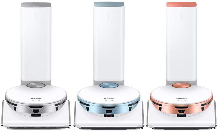 22년형 삼성 로봇청소기 좌측부터 화이트, 블루, 코랄 삼성 로봇청소기 22년형의 색상은 화이트, 블루, 코랄로 블루나 코랄은 다소 튈 수 있는 컬러이기 때문에 거실 인테리어와 잘 어울리지 못하는 경향이 있어 화이트 모델인 VR50T95936W의 선호도가 다른 두 모델에 비해 높은 편이다.