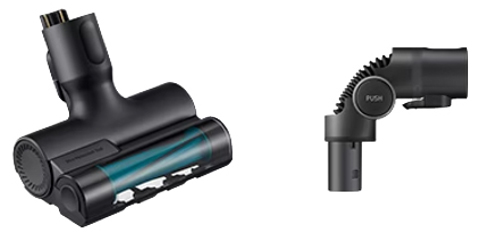 (좌) 침구 브러시, (우) 플렉스 연장관 참고로 250W 흡입력과 기본 배터리로도 만족할 수 있다면 VS25C972HRE, VS25C972HRG 모델도 나쁘지 않은 선택이다. 비록 침구 브러시와 플렉스 연장관이 없으나 침구 브러시로 침구를 흡입 청소하는 대신에 침구를 세탁기로 세탁하면 되는 것이고, 몸은 조금 힘들더라도 운동 삼아 팔과 다리를 뻗고 굽혀 청소를 하면 되는 문제이다.