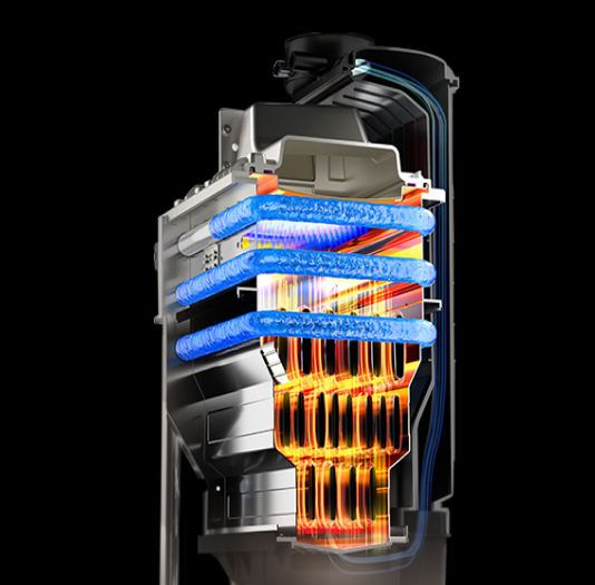 프리미엄 열교환기 열교환기도 업그레이드 되었다. NCB353의 열교환기는 스테인리스 열교환기로 내구성이 좋다는 장점이 있었는데, NCB354는 스테인리스 열교환기에 난방수 활용 장치를 추가한 프리미엄 열교환기로 열교환기 주변에 흐르는 난방수를 활용해 난방효율을 올렸다.(이를 통해 평균 난방열효율이 96.7%에서 97.6%로 0.9% 상승) 또한 기존 단열재 대비 낮은 표면 온도를 갖게 됨으로써 내부 부품의 내구성도 향상되었다.