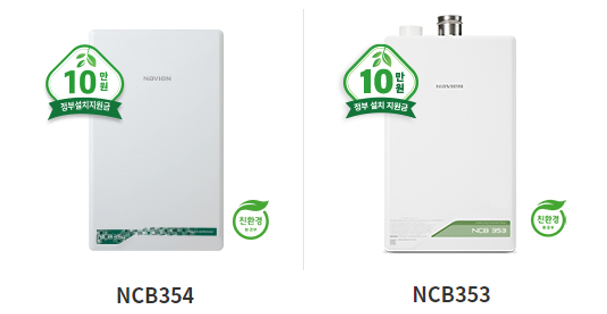 시리즈 NCB353 NCB354 년형 20년형 23년형 콘덴싱 O O 에너지등급 1등급 1등급 듀얼센싱 X O 프리미엄 열교환기 X O 난방열효율(평균) 96.7% 97.6% 온도도절기 터치 터치+다이얼