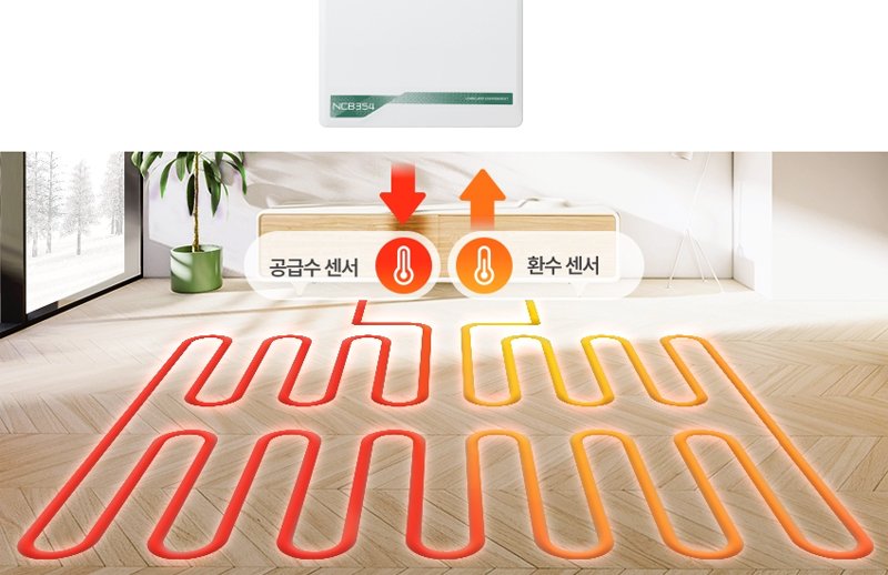 듀얼센싱 경동나비엔 가스보일러 NCB354는 최신형 보일러인만큼 구형인 NCB353과 비교하여 많은 부분이 업그레이드 되었는데, NCB354는 공급수 센서와 환수 센서의 듀얼 센싱으로 방을 데우는 온도는 물론 데우고 돌아오는 온도까지 두 번 감지하여 항상 일정한 난방온도를 유지해 준다.