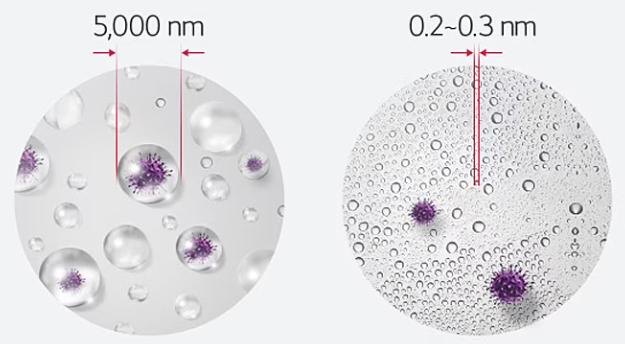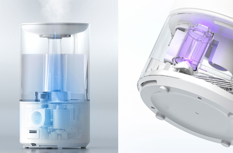 (좌) 초음파식 수분입자, (우) 자연기화식 수분입자 샤오미 가습기 2세대는 초음파식 가습기로 분무구에서 나오는 수분입자가 눈으로 보이는 수준의 크기이기 때문에 세균보다 수분입자의 크기가 더 커 세균이 올라탈 수 있으나, 샤오미 가습기 3세대는 자연기화식 가습기로 분무구에서 나오는 수분입자가 눈으로 보이지 않는 수준의 크기이기 때문에 수분입자가 세균보다 더 작아 세균이 올라탈 수 없는 구조를 갖는다.
