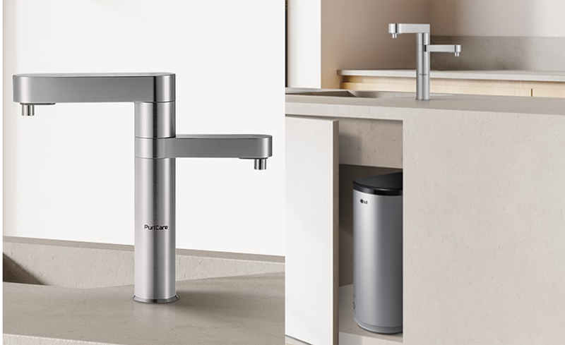 언더싱크 정수기 WU923AS LG 언더싱크 정수기 WU923AS, WU503AS는 싱크대 위로 파우셋만 노출되는 형태로 매우 깔끔한 빌트인 설치가 가능함은 물론 조리 공간을 넓게 사용할 수 있다는 장점이 있으나, 하부장에는 정수를 위한 별도의 본체를 설치해야 하기 때문에 일체형 본체의 데스크 정수기와 비교해 설치 구조가 복잡하며, 하부장에 그만큼 별도의 공간이 필요하다는 단점을 갖는다.
