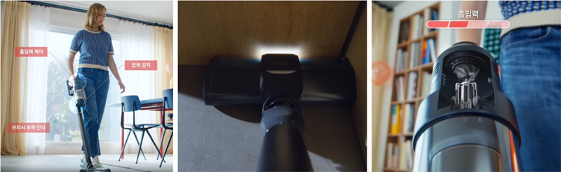 삼성 청소기 24년형은 청소 환경과 상황에 따라 브러시 부하와 압력을 감지해 흡입력을 제어해주는 AI모드가 1.0에서 2.0으로 업그레이드 되었다. 이에 따라 기존 마루, 카펫, 매트, 들림(이동)에 추가적으로 구석을 인식할 수 있게 되었으며, 브러시를 벽면에 밀착하면 약 2~3.5초 후 흡입력을 높여주어 구석에 대한 보다 효율적인 청소가 가능해졌다.