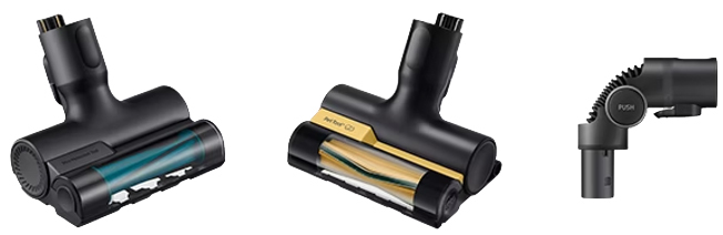 좌측부터 침구 브러시, 펫 브러시, 플렉스 연장관 브러시와 액세서리 자체는 23년형이든 24년형이든 차이점이 없으나 모델에 따라 구성품이 달라지는 부분은 여전하다. 구성품의 차이는 섬유 속 먼지까지 꼼꼼하게 청소할 수 있는 '침구 브러시', 털을 모으는 V자 구조와 엉킴 제거 그라인더가 장착된 '펫 브러시', 청소기가 잘 닿지 않는 곳을 커버할 수 있도록 해주는 '플렉스 연장관'에서 발생하며, 추가되는 구성품 종류에 따라 가격이 달라지기 때문에 필요에 따라 모델을 선택하는 것을 추천한다.