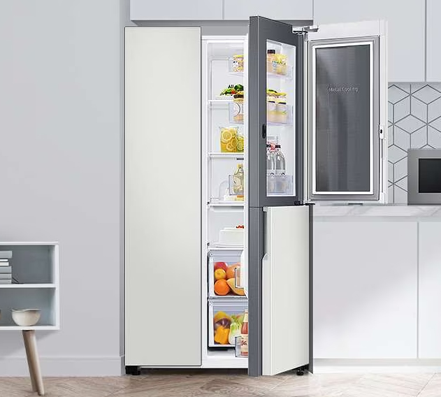 RS84B5041CW의 푸드쇼케이스 + 메탈쿨링도어 양문형 냉장고에 푸드쇼케이스가 없는 경우 냉장실에 식자재를 꺼낼 때 오른쪽 냉장실 도어 전체를 열 수밖에 때문에 우측 상단 냉장실 도어만 열 수 있는 4도어 냉장고에 비해 냉기 누출이 심할 수밖에 없다. 하지만 양문형 냉장고인 RS84B5041CW는 4도어 냉장고처럼 우측 상단 냉장실 도어만 열 수 있는 푸드쇼케이스가 탑재되어 있고, RF84C906B4W에 없는 메탈쿨링도어까지 적용되어 우측 상단 냉장실을 열었을 때의 냉기 손실만은 4도어 냉장고인 RF84C906B4W 보다 미세하게나마 우위에 있지 않나 싶다.