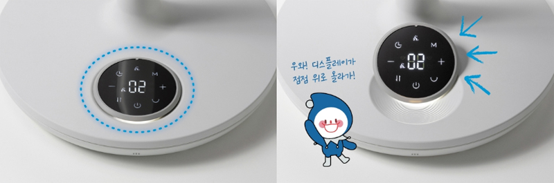 SIF-CU09ECA의 고정 디스플레이 신일 써큘레이터 SIF-CU09ECA의 디스플레이는 고정형 디스플레이로 위 무빙 디스플레이, 스윙 디스플레이와 같은 동작은 없으나 항상 정면을 향해 고정되어 있기 때문에 작동 상태의 확인이 편리하고 내구성 문제도 없다. 다만 조작부가 써큘레이터 상단에 있다 보니 발 터치는 매우 힘들다.