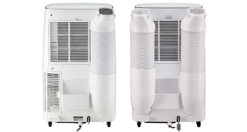 (좌) 23년형 PQ08DDWAS1, (우) 24년형 PQ08EDWAS LG 이동식 에어컨 24년형 PQ08EDWAS는 23년형 PQ08DDWAS1과 다르게 싱글호스가 아닌 듀얼호스가 탑재되어 있어 동일한 냉방능력 3200W을 갖고 있음에도 더 빠른 실내 냉방이 가능하다. LG에서 시험한 데이터에 따르면 실내 온도 33도에서 아이스쿨파워로 28도 도달시간 측정 시 싱글호스인 23년형은 14분 55초, 24년형은 9분 40초로 24년형이 23년형 대비 설정온도 도달시간이 35% 더 빨랐다.