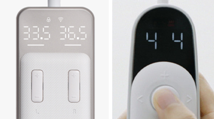 (좌) 0.5도 온도조절, (우) 8단계 온도조절 온도조절에 있어서도 EME520, EME550S는 28도에서 50도 사이에서 0.5도 단위로 총 23단계의 조절이 가능한데 EME500은 8단계로만 조절이 가능해(온도로 따지면 약 3도 단위) 사용자에게 딱 맞는 온도 설정에 있어서 한계가 있다.
