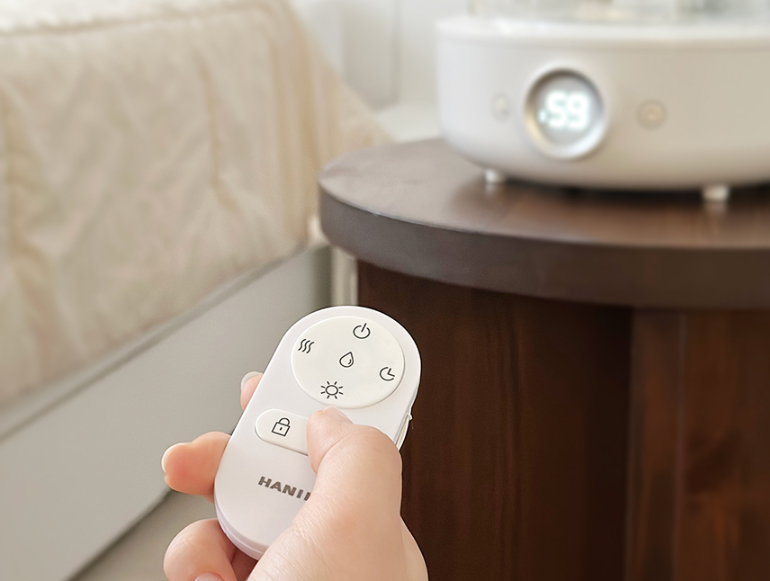 한일 물멍 가습기 GSH-E310R, HGSSP-300SW는 GSAM-300에 비해 습도설정, 분무량뿐만 아니라 타이머, 취침모드, 차일드락, 리모컨에서도 우위를 갖는다. 가습기 본체 LED 표시창과 무드등을 끌 수 있는 취침모드나 영유아의 오작동을 방지할 수 있는 차일드락은 그렇다고 쳐도 1시간에서 8시간을 설정할 수 있는 작동 타이머와 원거리에서도 가습기를 컨트롤할 수 있는 리모컨이 없는 부분은 두고두고 아쉬울 수 있다.