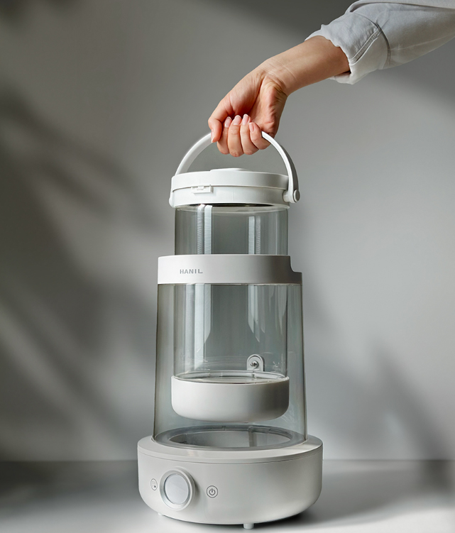 한일 HGSSP-300SW의 분리형 수조 한일 가습기 GSH-E310R과 HGSSP-300SW의 결정적인 차이는 수조의 구조와 제품 크기에서 찾을 수 있다. HGSSP-300SW의 수조는 GSH-E310R과 다르게 일체형이 아닌 분리형으로 물 보충시나 수조 세척 시 수조를 따로 분리해 원하는 곳으로 가져갈 수 있기에 일체형에 비해 보다 편리하다. 제품 크기도 용량은 3리터로 동일하나 HGSSP-300SW가 가로와 깊이는 37mm 작은 210mm, 높이는 50mm 낮은 305mm로 그만큼 크기가 더 작아 공간을 덜 차지한다.