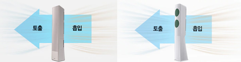 56.9제곱미터(17평) 기준으로 크기(가로x높이x깊이)는 무풍갤러리가 415x1830x286mm, 무풍클래식이 363x1883x294mm로 큰 차이는 아니나 무풍클래식이 조금 더 슬림하다고 볼 수 있다.