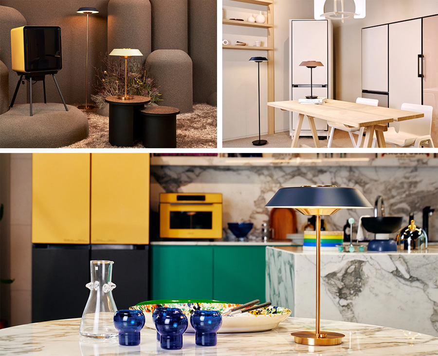 비스포크 가전과 어울리는 생체리듬 인테리어 스탠드 인테리어 조명으로도 훌륭하지만 비스포크 냉장고, 비스포크 오븐 등 삼성 비스포크 가전과도 잘 어울려 실내 인테리어를 더욱 살릴 수 있다.